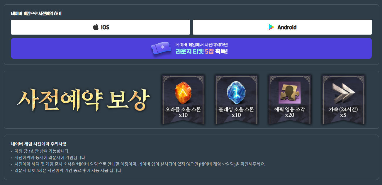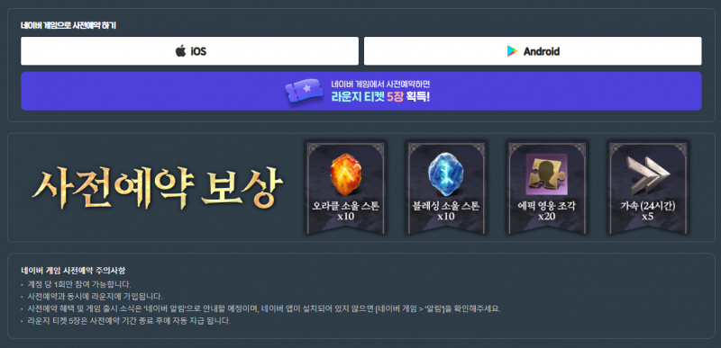 현재 사전예약 진행중이라 진행 완료하면 게임 런칭 시 오라클 소울 스톤 10개