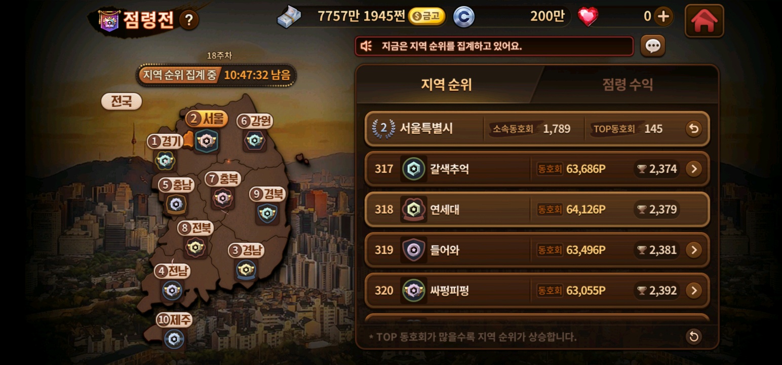 고기반찬 한게임섯다 지역점령전 재밌네 작성일시 : 2023. 05. 03 (12:22) 조회 : 494 / 댓글 : 2 요즘 지역점령전이라는 콘텐츠가 나와서 저도 꾸준히 참여해보고 있거든요얘네가 나오면서부터 섯다인생이 뭔가 동기가 생겼달까 ㅋㅋ그래도 우리동네가 좀 높은 등수에 있는게 보기에도 좋잖아요?;; 이거 가끔 뜨는 모드인 배짱전이었나? 이거 나올떄가 진짜 꿀잼인듯다들 좀 사리면서 플레이하시다가 배짱전만뜨면 엄청나게 걸어대심 ㅋㅋㅋㅋ와 근데 망통에 올인한 사람 뭐냐 남자네 2추천 글쓰기스크랩 신고