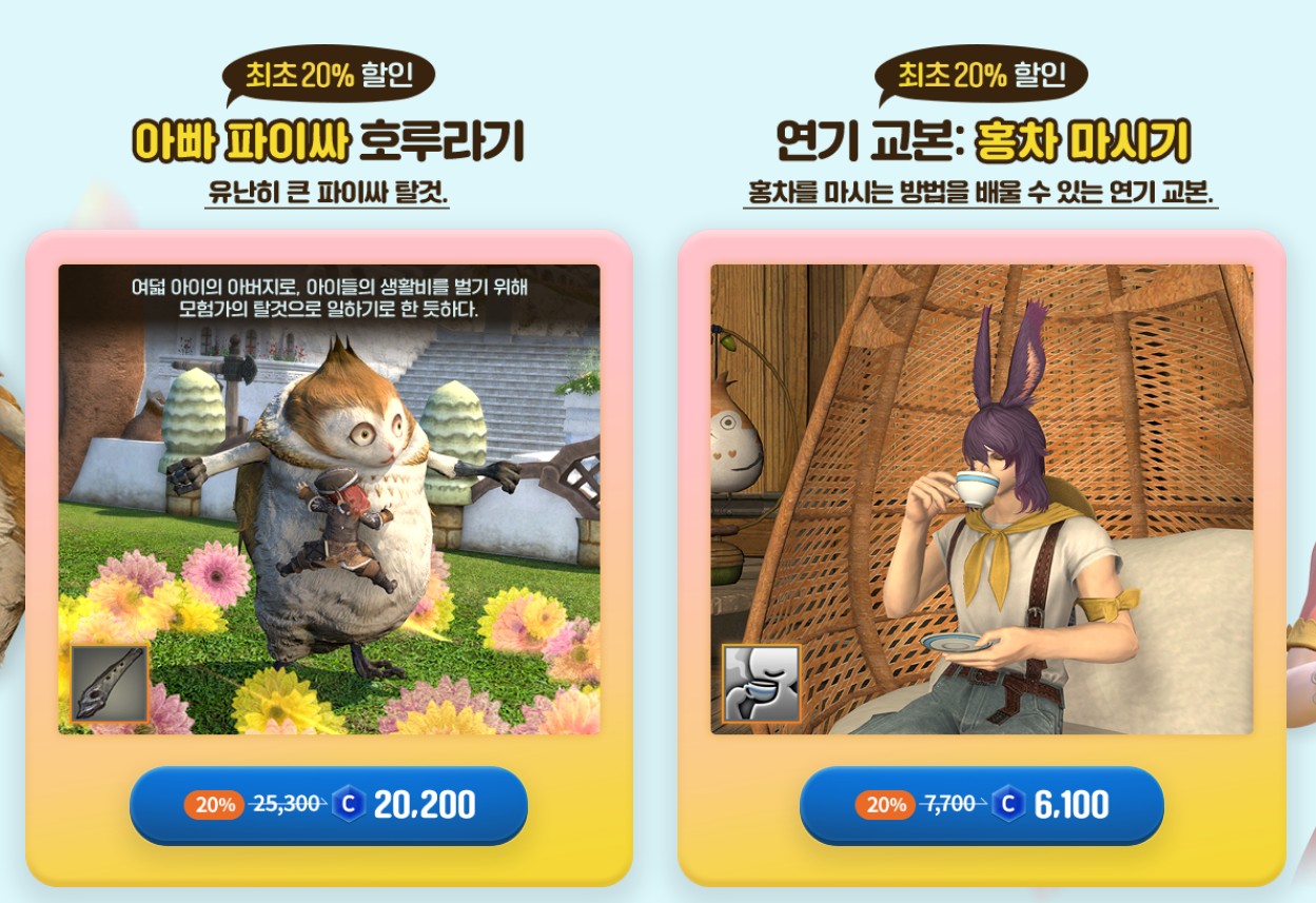 블랙긴상 파판14 홍차마시기 샀음! 작성일시 : 2023. 05. 09 (15:21) 조회 : 507 / 댓글 : 1 이번에 아빠 파이싸의 만물상 열려서아빠 파이싸 탈것이랑 홍차마시기 최초 20% 할인 들어 갔길래홍차 마시기 냉큼 사버림 ㅋㅋ파판14는 음식 관련 감정표현은 완전 실사처럼 묘사해가지구 ㅋㅋ 사고 바로 써봤는데 역시 만족 ㅋㅋ찰랑거리는 홍차 디테일 까지 완벽홍차 냄새가 막 여기까지 나는 것 같으당간만에 감정표현 쇼핑하니까 기분 좋구만! 1추천 글쓰기스크랩 신고