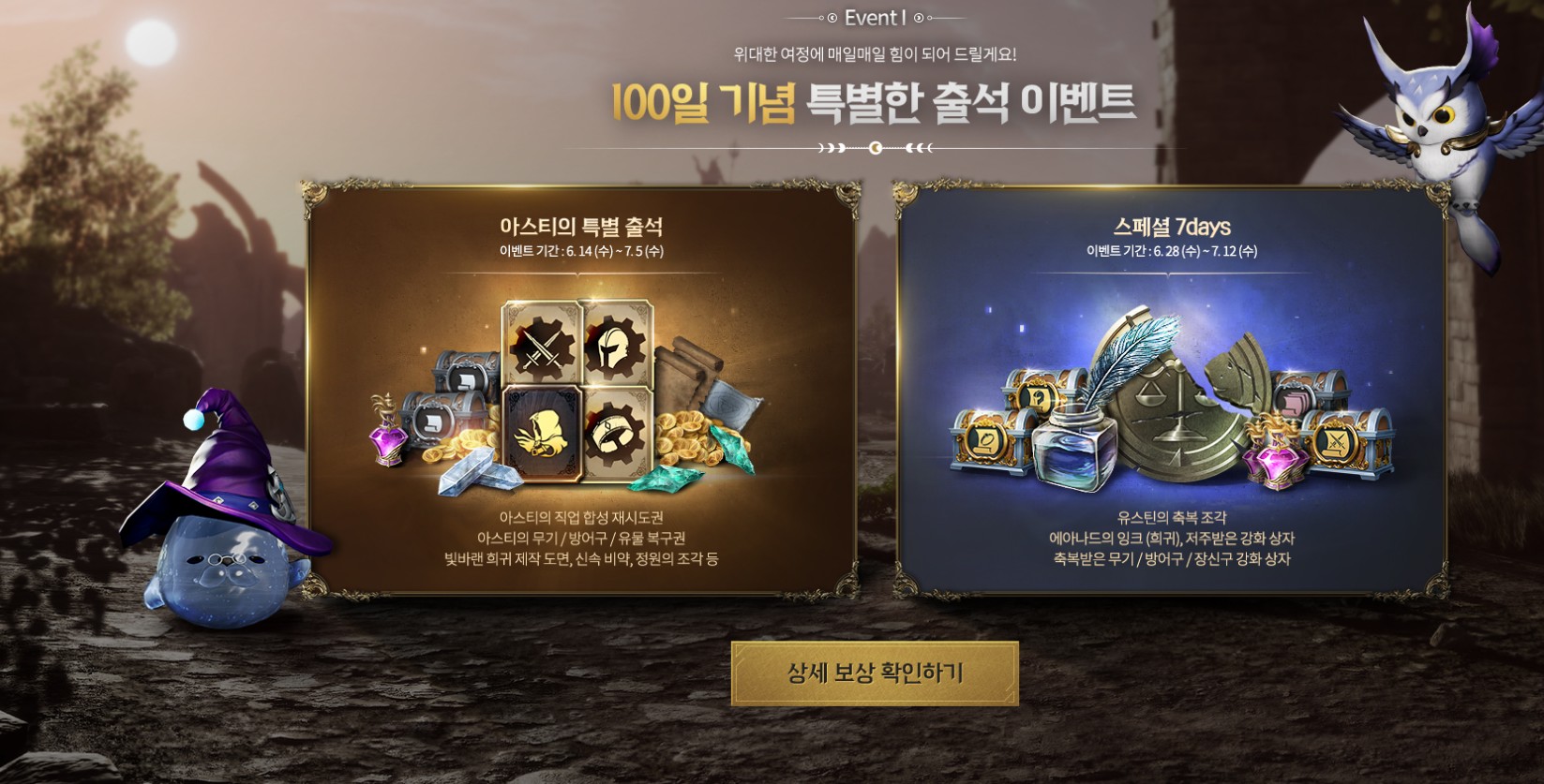 게임에 접속만 해도 아스티의 무기/방어구/유물 복구권 받을 수 있으니까 이번 기회에 아키에이지 워