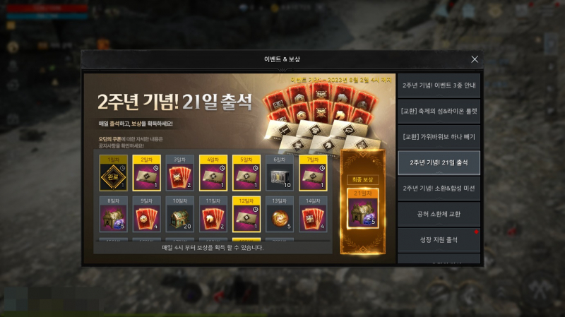 꾸쀼쀼 오딘 2주년 업뎃됨 작성일시 : 2023. 06. 28 (18:42) 조회 : 494 / 댓글 : 1 오딘 2주년 기념으로 인게임 이벤트 업뎃됨2주년 이벤트 3종 7일 출석 + 21일 출석부 같이 하고 있음요 그리고 2주년 기념으로 소환&합성 미션 이벤트도 하는데미션 완료 보상으로 영웅 아바타, 탈 것, 무기 형상 소환권 주는 듯이번 2주년 이벤트 많아서 만족..ㅠ 1추천 글쓰기스크랩 신고