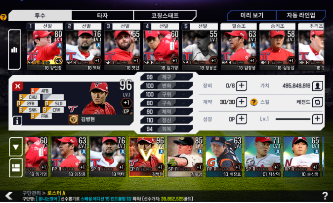 이 게임이름은 이사만루 2018인데 자신이 좋아하는 선수들을