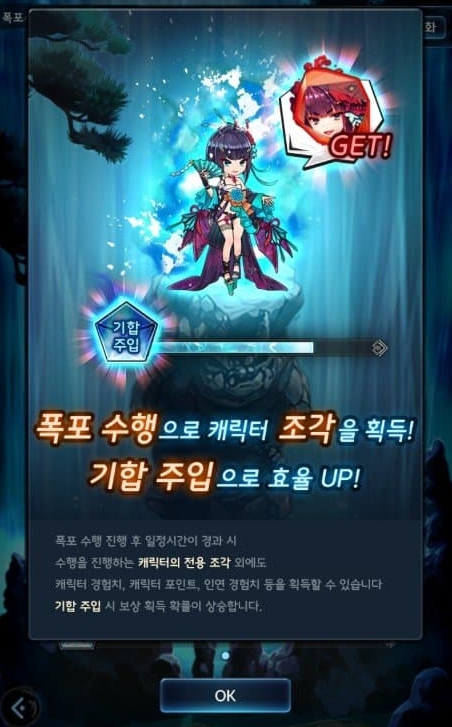 캐릭터 조각/ 캐릭터 경험치/ 캐릭터 포인트/ 인형 경험치 획득할 수 있어