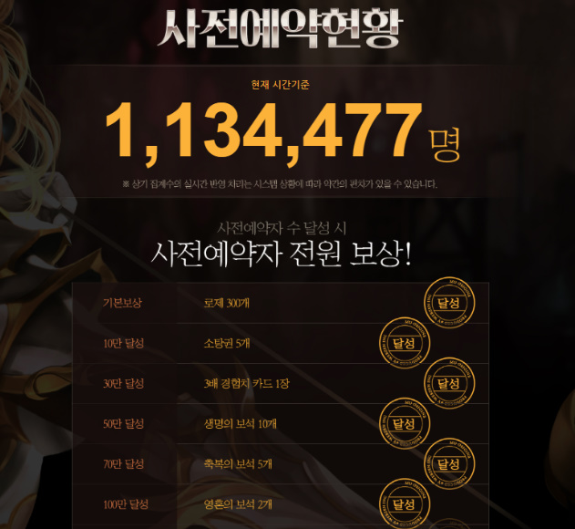 그러고 보니 사전예약자 수에 따라서 주는 보상 100만 달설 까지는 받은 셈이 되는건데