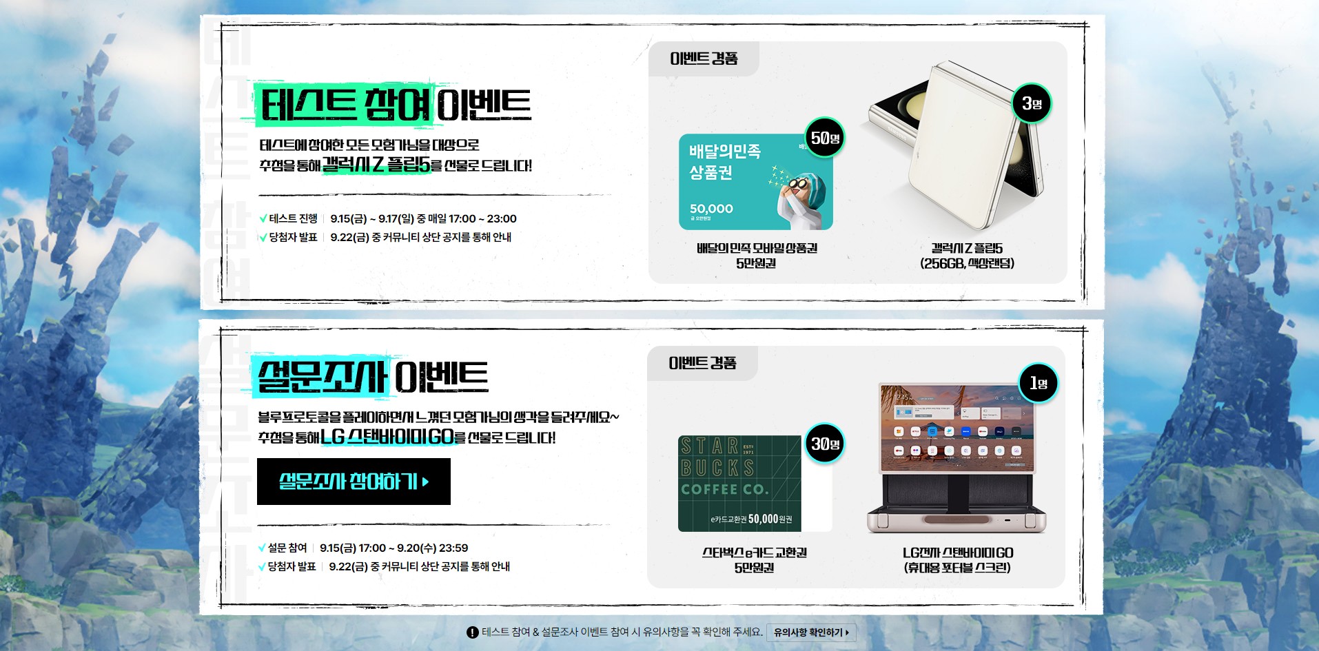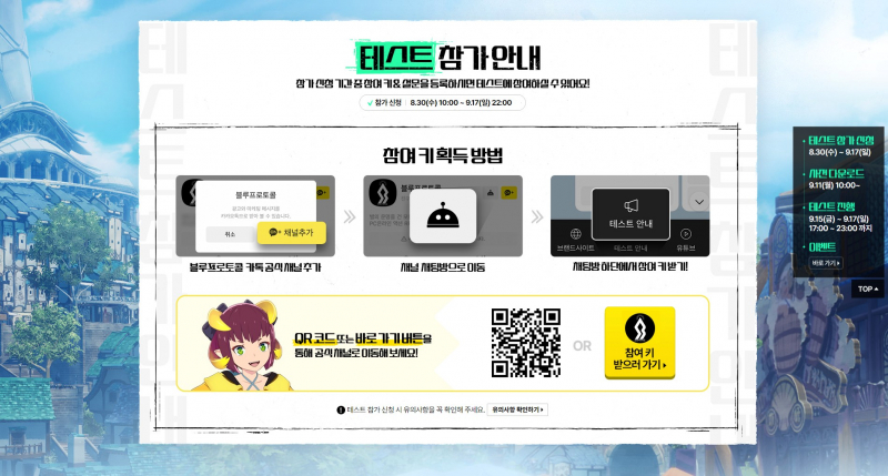 고기반찬 블루프로토콜 현지화테스트함 작성일시 : 2023. 09. 04 (17:35) 조회 : 375 / 댓글 : 1 블루프로토콜 카톡 공식 채널 개설되어 있는데요여기서 채널 채팅방에서 테스트 안내누르면 키주는데 그걸로 신청해두면됨9월 15일부터 17일까지니까 해볼만큼 해볼 수 있을 듯 테스트 참여만 해도 추첨해서 경품을 주는 이벤트도 있거든요거기다 설문조사참여까지해두면 또 따로 경품 있음참여하실거면 이런 이벤트들도 참고하세요 2추천 글쓰기스크랩 신고