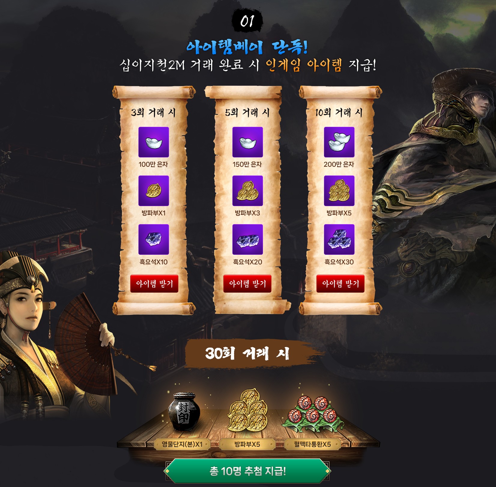 30회 거래하면 추첨으로 꽤 달달한 보상들도 준다는것 같으니까 참고하시고