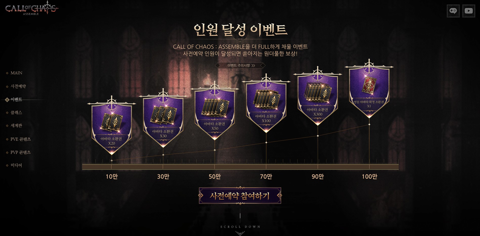 사전예약 달성 이벤트가 진행중인데 10만 명부터 최대 100만 명까지 달성완료하면