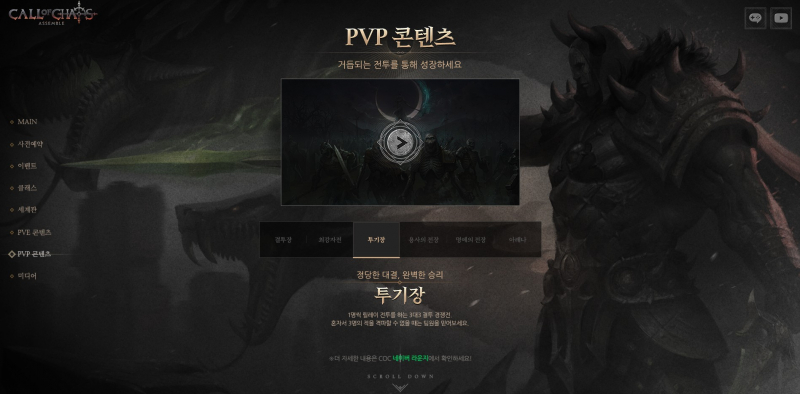 콜오브카오스 어셈블이라고 사전예약 신청이 시작됐는데 PVP콘텐츠가 다양하게 있더라구요