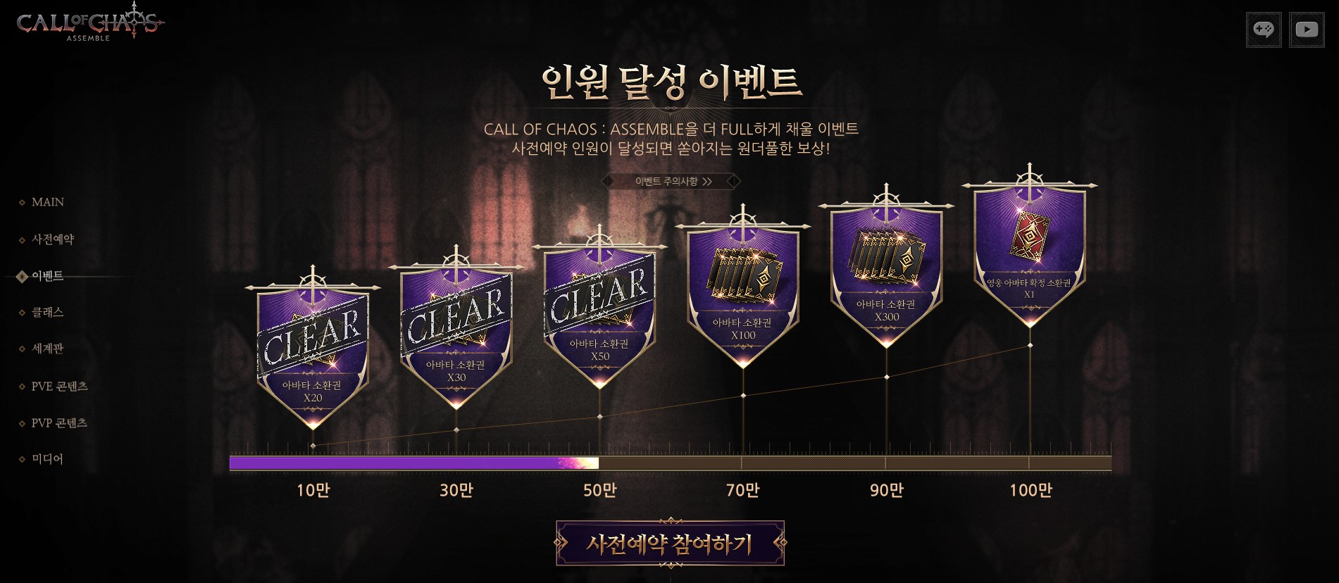 콜오브카오스 : 어셈블 사전예약 인원 달성 이벤트 보상 좋아요