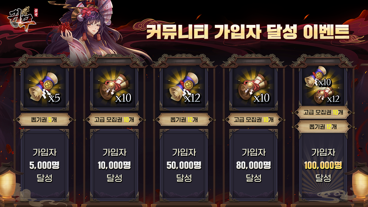 최대 10만명을 달성할 경우 뽑기권 29개, 고급 모집권 30개를 얻을 수 있죠.