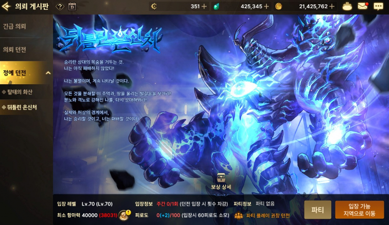 고기반찬 던파모바일 2차 정예던전 나옴 작성일시 : 2023. 10. 24 (12:39) 조회 : 437 / 댓글 : 2 던파모바일 2차 정예던전으로 뒤틀린 은신처가 업데이트됐거든요이거 탈태의 화산보다 기준항마력 높은데 보상은 더 많기는 해요그래서 기존에탈태의화산 솔플하던분들은 대부분 넘어와서 파티찾아서 하는 듯 그렇다고 탈태의 화산을 없애지는 않고 그대로 참여할 수 있게 해줬거든요그래서 탈태의화산에서 파밍해서 항마력올린다음에 뒤틀린 은신처가는 식으로 해도 괜찮을정도임요뒤틀린 은신처만큼은 아니더라도 얘도 레이드 장비 만들 수 있는 재료는 다 주니까요 2추천 글쓰기스크랩 신고