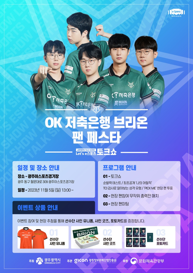 OK 저축은행 브리온과 함께하는 '광주 렛츠 e스포츠 토크쇼'가 11월 5일 광주에서 열립니다!