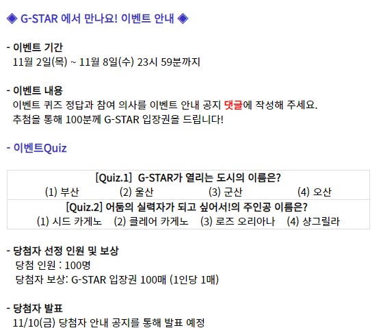 지스타 이벤트 당첨되서 입장권 무료로 가봤으면 좋겠는데ㅎ