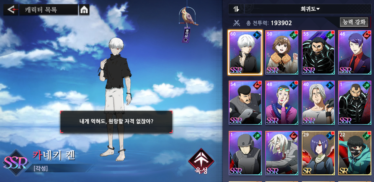 오마즈인 도쿄구울 모바일게임 작성일시 : 2023. 11. 15 (17:40) 조회 : 334 / 댓글 : 0 드뎌 각성 카네키 까지 얻었네요.도쿄구울 모바일게임 시작한지 얼마 안됐는데그래도 게임성 나쁘지 않고 타격감 좋고 그래요..시간가는 줄 모르고 하게되는 그런 느낌 100프로 만족하는건 아니지만요 1추천 글쓰기스크랩 신고