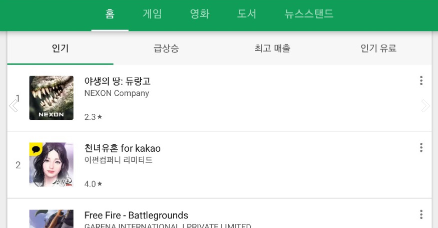 지금 현재 구글 스토어 인기 게임 순위 2등입니다.