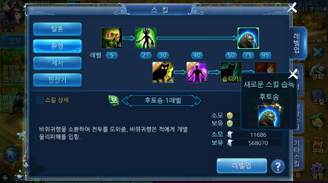 [천녀유혼for kakao]드디어 바위귀령 소환 했습니다.75렙달성!