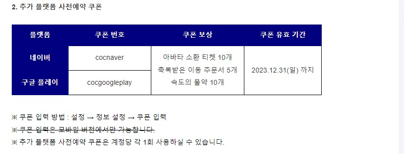 사이라 콜오브카오스 어셈블 쿠폰들 챙겨두세요 작성일시 : 2023. 12. 04 (17:19) 조회 : 329 / 댓글 : 0 저도 저 쿠폰 있는지 얼마전에 알았는데요해보니까 아직 정상적으로 사용이 잘 되기는 하더라구요 ㅋㅋ두 개 중복사용가능해서 사실상 뽑기 20개씩 받고 시작할 수 있는거죠...생각보다 이 게임이 뽑기권 엄청 뿌리기는 하지만공짜로 20개 더 준다는건 언제어디서나 환영받을 거기는 해가지고 ㅋㅋ뭐가됐든 쿠폰같은거 잘 챙겨서 좋은 거 뽑아보세요 1추천 글쓰기스크랩 신고