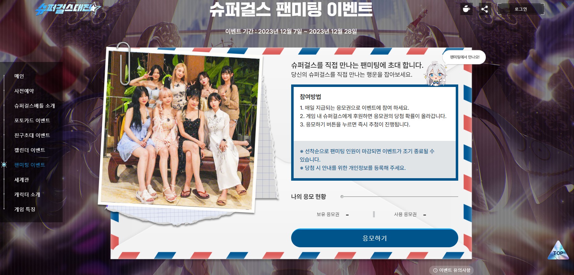 SSR 확정으로 받을 수 있어요 7일부터 슈퍽러스 팬미팅에 참여할 수 있는