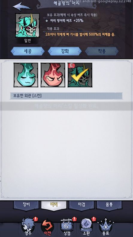 아흑 유령 기사 키우기 머리에따라서 달라지는 능력 ㅋㅋ 작성일시 : 2023. 12. 13 (15:48) 조회 : 360 / 댓글 : 1 유령 기사 키우기 ㅋㅋ 방치형rpg 게임 중에서간만에 재밌는거 찾았습니다.ㅋㅋ머리에 따라서 공격형태나 스킬이 달라지는데보면 위에 머리는 불 머리라 주변에 화염피해를 주고 이렇게 해골왕의 머리를 끼면은 주변 적들한테가시를 발사해 500프로의 피해를 주는 능력을 가지고룩도 바껴가지고 신선한거 같습니다간만에 방치형 게임 재밌는거 찾았네요 2추천 글쓰기스크랩 신고