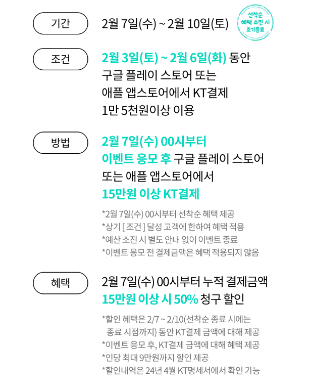 도붸르만 아니 KT 결제 50프로 할인이라니 ㄷㄷ 작성일시 : 2024. 02. 06 (01:10) 조회 : 554 / 댓글 : 0 KT에서 결제할인 이벤트하는데 이번꺼는 좀 큽니다.최대 50프로나 할인해주는데 KT결제로구글, 애플 상관 없이 15만원 이상 결제시50프로나 할인 해준다고 하니까 꼭 신청해두세요2월 6일까지라고 합니다 ㄷㄷ 2추천 글쓰기스크랩 신고