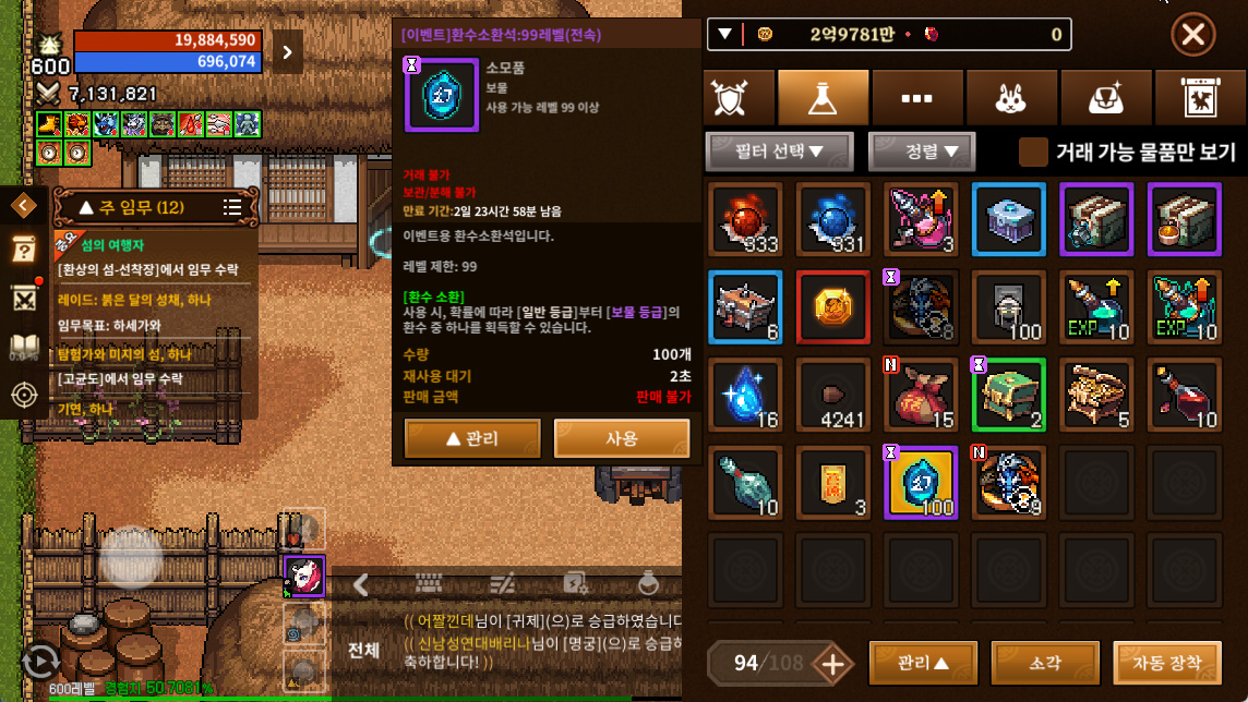 도붸르만 바람의나라 연 1050회 환수 소환 하는중! 작성일시 : 2024. 02. 23 (16:19) 조회 : 1,021 / 댓글 : 0 바람의나라 연에 극 급속도약에 새해 이벤트에직업 리마스터 및 변경 이벤트까지 다양하게 있는데지금 매일 출석으로 1050회 환수 소환권 주는데출서으로 100회나 60회 등 받아서 까보고 있는 중입니다 지금까지 한 400회 정도 깠는데보물 등급이 7개정도 나온거 보니까선방한듯 싶네요 ㅎㅎ 지금 복귀하면이렇게 소환권도 많이 받고 하니 꼭 해보시길 2추천 글쓰기스크랩 신고