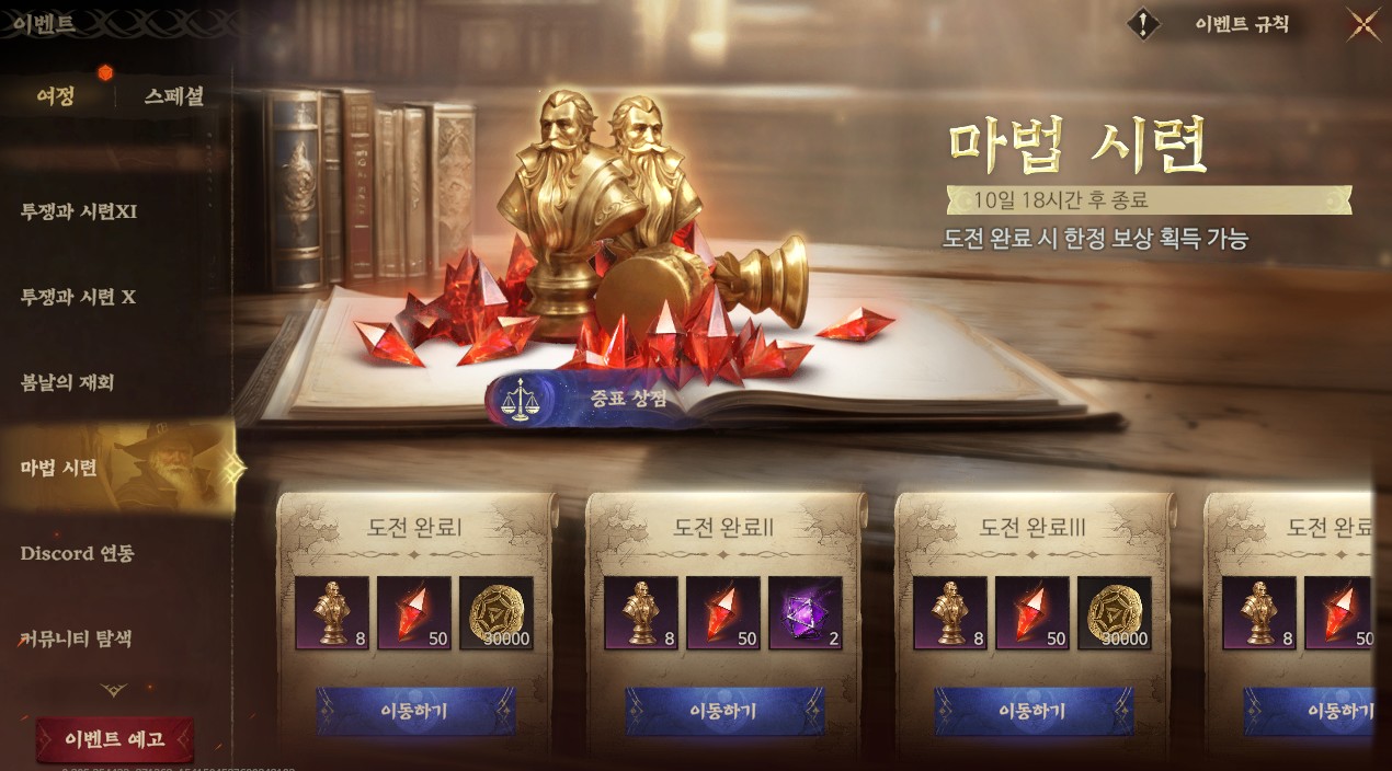 이벤트 스토리 전부 밀어보기 전에 마법시련에서 재화들 좀 모아보려구요