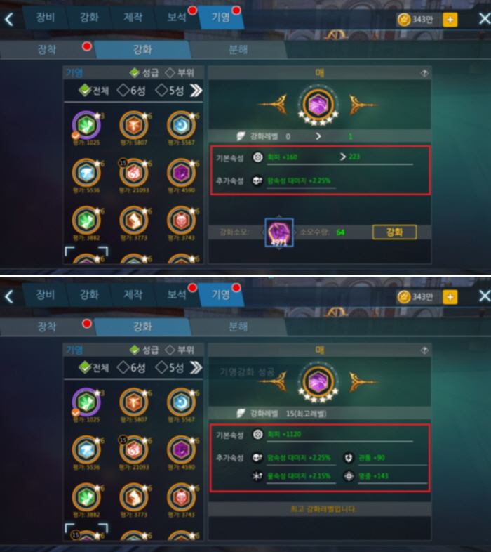 기영 강화해서 전투력 상승 시킬수있어요