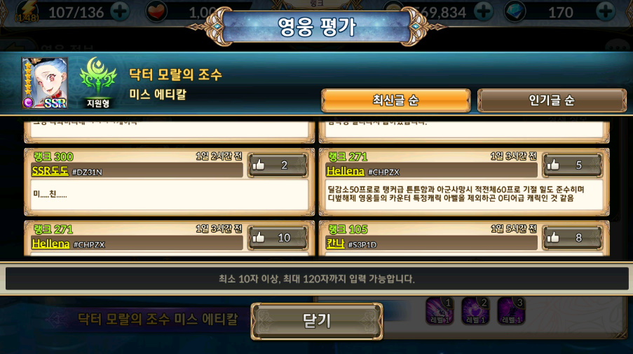 운 좋게 바로 얻어서 영웅 평가 찾아보니까