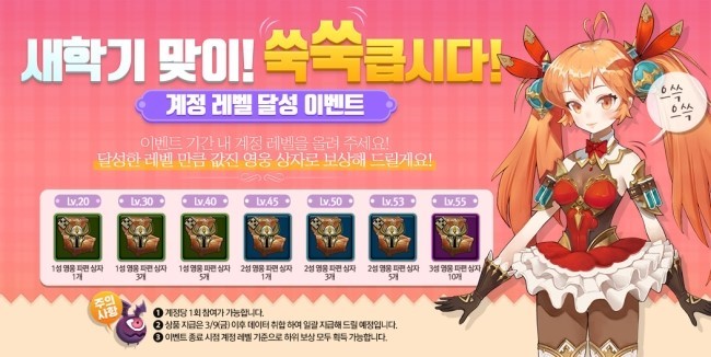 20, 30 40, 45, 50, 53, 55 기준 레벨 달성 하게되면 영웅파면상자를 받게되는데