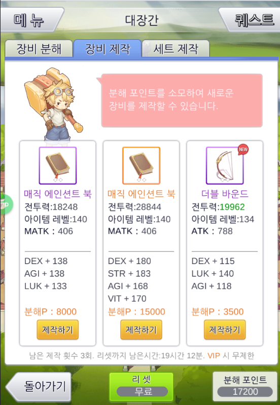제작은 리셋을 돌리다보면 3500짜리가 등장을 합니다. 그걸 제작을 하면서 15번 맞추면 되는데