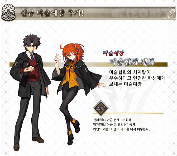 박소미 페그오) 여러분이 제일 마음에 드는 의상은 무엇인가요? 작성일시 : 2018. 03. 04 (13:13) 조회 : 4,550 / 댓글 : 3 이번에 페그오 4장 스토리 런던 업데이트되면서 추가된 마술예장!!마스터가 착용할 수 있는 의상으로 다양한 스킬이 있죠 ㅋㅋㅋ전 마술협회 제복이 제일 예쁜 것 같은데 여러분은 어떤 의상이 마음에 드시나요?(마술예장 퀘스트는 칼데아 전투복을 진행하고 있다는게 함정!) 4추천 글쓰기스크랩 신고