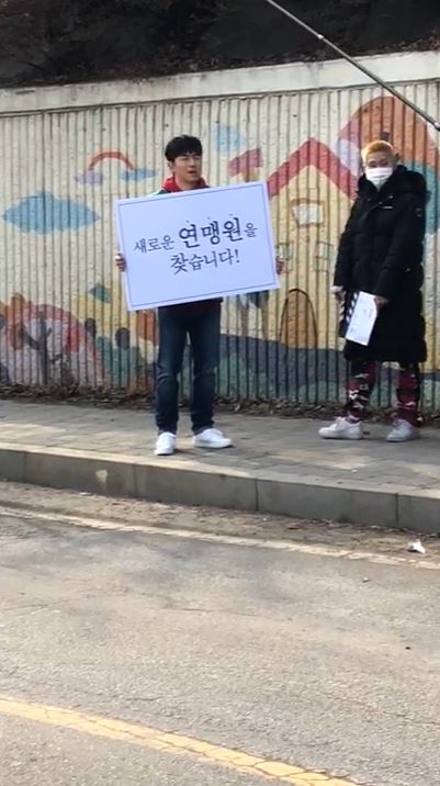 이시언이 연맹원 찾는다는 팻말을...