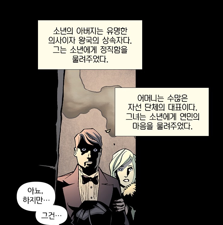 웨인부부가 죽자 고담시티는 점점 망가져 갔고 결국에 아버지에게서 답을 구한 소년은 커서 배트맨이 되었습니다.