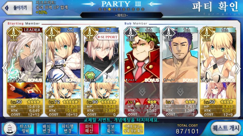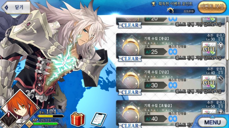Hopedope 세이버 워즈 소소한 팁 작성일시 : 2018. 03. 16 (15:57) 조회 : 1,750 / 댓글 : 1 이번에 진행하고 있는 페그오 이벤트인 세이버 워즈에서 자신의 덱이 좋지 않은 분들에게 추천 드리는 곳... 스테이지는 중급에서 도시는 것을 추천 드리고 하루에 한번씩 열리는 챌린지는 무조건 도전을 하시어 포인트 획득에 투자를 하시길 바랍니다 참고로 위의 덱은 제 덱으로써,,, 어느 정도 세이버가 있다싶다면 상급에서 주구장창 도시길 바라겠습니다 ㅎㅎ 저도 그렇게 높지 않아서 친구 찬스 사용중입니다 ! 4추천 글쓰기스크랩 신고