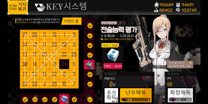소녀전선 내일이면 빙고완성이군요~