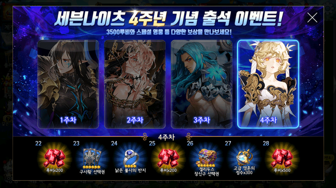 얼마전에 업데이트가 된 세븐나이츠~ 4주년을 맞이해서 여러가지 이벤트를 진행 중이죠.