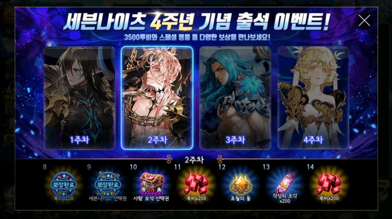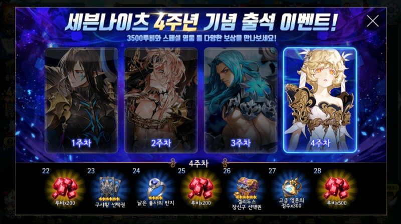 이번 4주년 기념 출석 이벤트가 4주동안 이뤄지는데, 보상들이 생각이상으로 좋더군요