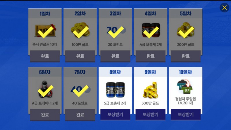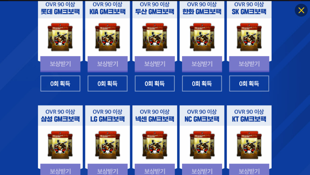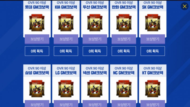 각 일차에 주는 보상들도 좋지만 3일, 7일에 받는 포인트로 각 팀GM크보팩을 받을 수 있는데요.