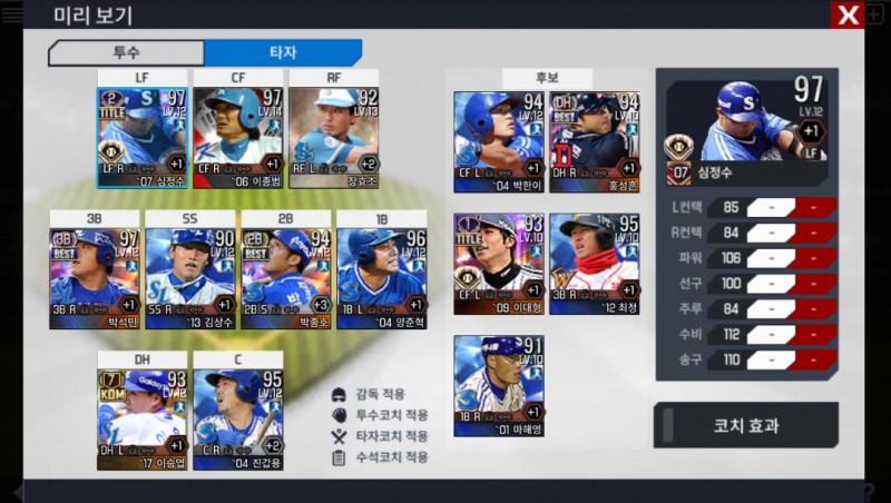 현재 이사만루2018에서는 제 삼성 라이온즈로 시즌을 압도적으로 이기고 있는데
