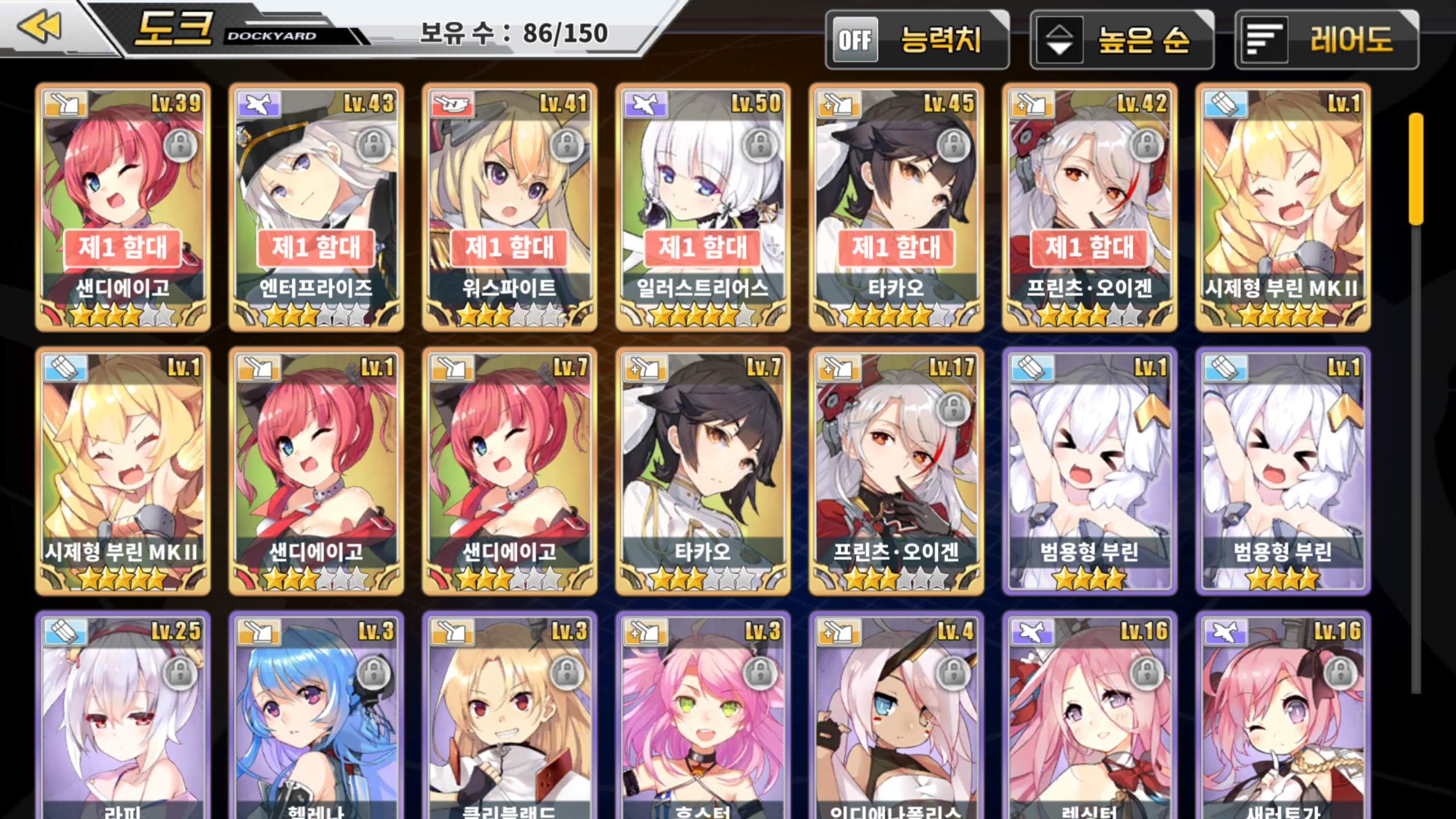 저는 1~2함대 같이 돌리니까 랩업빨리 되던데요... 곧 30되는...29랩 중간..