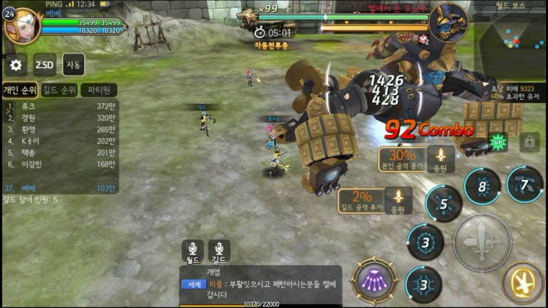 미르84 드래곤네스트M CBT 2일차 작성일시 : 2018. 01. 12 (16:21) 조회 : 2,321 / 댓글 : 0 드래곤네스트M 보스전 플레이중 ㅋㅋ 응원으로 자기공격력 / 길드 공격추가 올릴수도 있고 개인순위도 쭉 나오네여 아직은 좀 약해서 15위까직 밖에 못했는데.. 6등안에 들어보고 싶음 ㅋㅋ CBT이지만 그래도 재밌게 즐기고있음 CBT추가모집도 하던데 해보고 싶은분은 한번 신청해보세여 4추천 글쓰기스크랩 신고