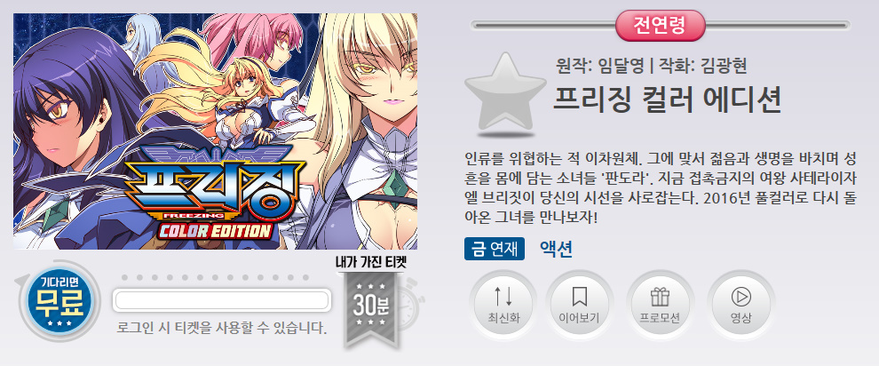 웹툰 프리징 1화부터 50화까지 무료 공개한다고 합니다.