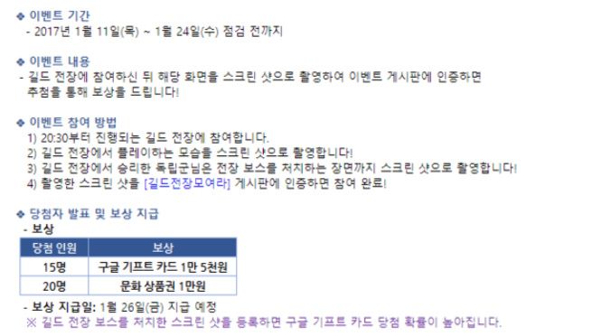 길드 전장에 참여하고 스샷을 찍어서 이벤트 게시판에 인증만 하면 되는
