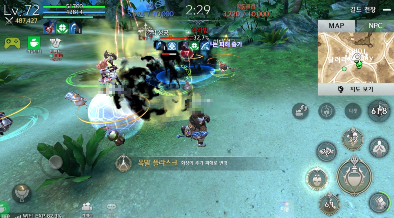 이번에는 이겨서 필드 보스를 봤는데, 어제는 길드원이 적어서 필드보스를 못잡았다는...