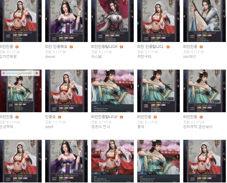 만두만두 삼국지M 미인항 이벤트 시작.. 작성일시 : 2018. 10. 18 (17:52) 조회 : 1,935 / 댓글 : 0 삼국지M 저번에 미인항 업데이트가 되고나서궁성 19를 찍으려고 많이들 노력하는걸로 알고 있는데요.사실 저도 신섭에서 하고 있는데 아직 19는 못찍었거든요. 이번에 미녀 인증 이벤트도 하던데연맹원들은 벌써 인증을 마쳤다고 톡방에 인증하고 그러더라고요. 인증 게시판에 가보니까 벌써 엄청나게 많이들 하고 있던데..ㄷㄷ저도 성광을 먹고 있으니 몇일내로 19궁성 찍을수 있을것 같은데빨리 찍고 인증하고 싶네요. 2추천 글쓰기스크랩 신고