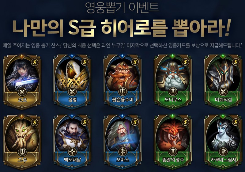 중요한건 제일 마지막에 선택한 영웅을 정식 오픈 후에 지급한다고 합니당.