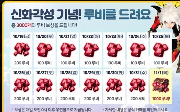 11월 1일까지 총 3000개의 루비를 얻을 수 있는 이벤트도 진행 중입니다!!