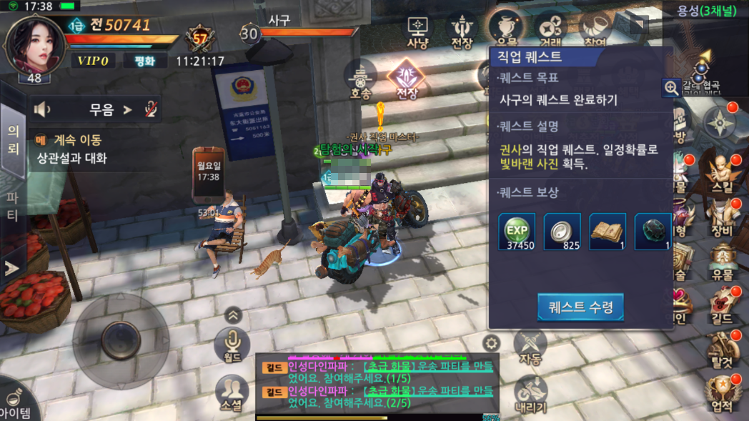 오늘 레이더스 하다가 직업 퀘스트 라는 것을 발견했어요