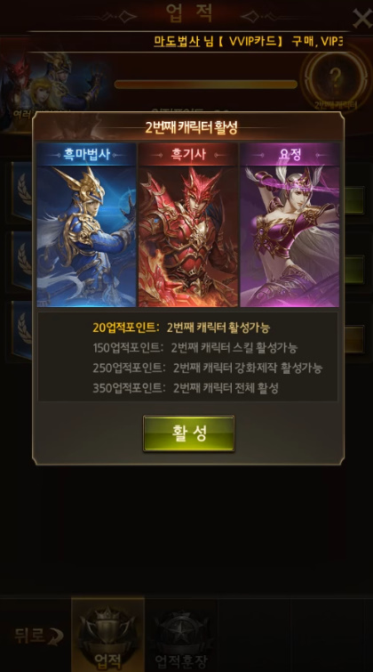 그래서 살펴보면 이번에도 업적포인트 점수에 따라 최대 5개 캐릭터를 키울 수 있는데용!