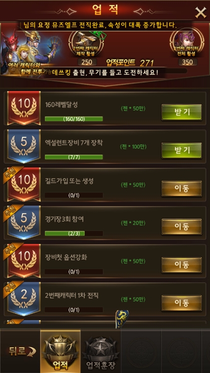 간혹 보면 채팅만 쳐도 업적이 완료되는 경우가 있고, 길드가입 또는 생성만해도 쌓이는 경우가 있어요.